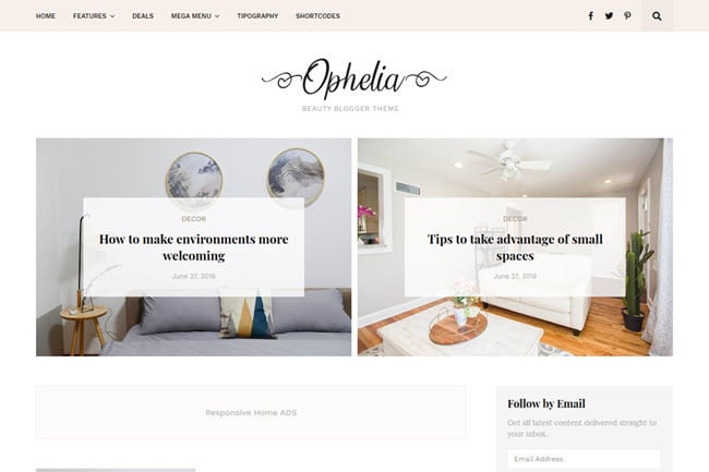 Ophelia is a professional fashion blogger theme with clean design and very beautiful, yet is fully customizable allowing you to change colors, fonts, widths and backgrounds. Ophelia has SEO optimized and is very fast, which will help you to get better results in the search engines. When it comes to increasing ad earnings, it does not disappoint because it has strategic areas to add your ads, whether they're AdSense or third-party ads.