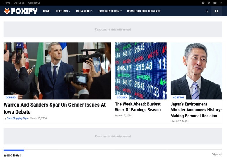 Foxify Blogger Template is a fully SEO-optimized blogger template. This template is suitable for various niches like News, magazines, Stock market, and other blogs. It is easy to customize and fast in loading. It is very simple and attractive in look. This template supports all device types for example Mobile, Tablet, Laptop, Desktop. In this template, you will get various latest features like Dark mode, RTL, Megamenu, etc. By using this template you can create your website in less amount time. These all the advanced features of the template will make your website eye-catching and the SEO optimized features will help your website to get more reach and search rankings.