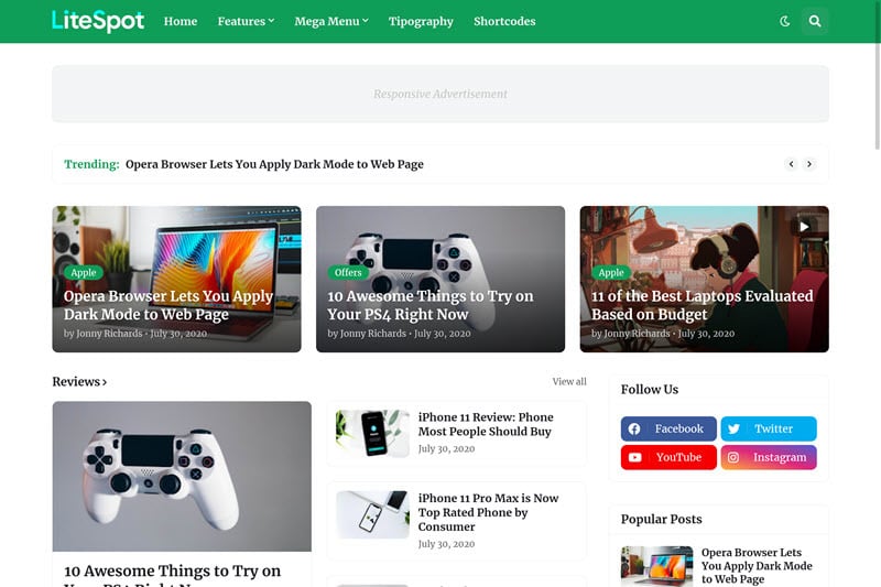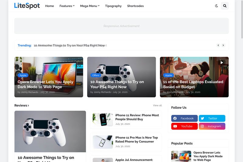 LiteSpot Magazine Blogger Template is considered a highly optimized theme. It is professional, speedy, and fully customizable. This theme is suitable for Google Adsense. It is optimized using the latest and advance SEO technologies. If you are thinking to create a news site, magazines, blogs, or other things it is going to serve you best. It is highly recommended for technology websites. This marvelous theme contains super-fast loading and also an appealing design. It is available both in free and premium versions. If you have used blogger then you should definitely give it a try to this theme.