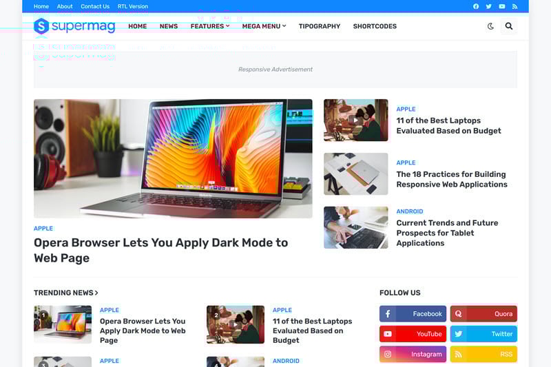SuperMag Blogger Template is a very powerful and professional theme. SuperMag is very fast and optimized, allowing your website to get the best results on search engines. SuperMag is fully compatible with mobile devices and is also adsense friendly.